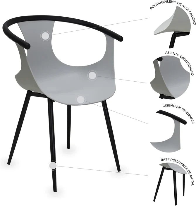 CÓMODO Y ERGONÓMICO ASIENTO: El diseño curvo de esta silla minimalista, así como sus proporciones sobradas de altura, frente y fondo, la hacen ergonómica y cómoda para todos los usuarios; Perfecta para invitar a  clientes a tomar asiento
